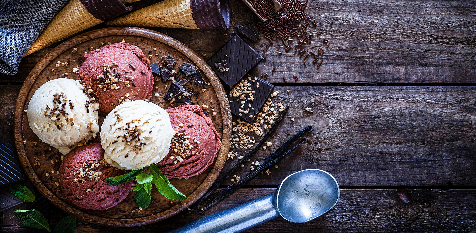 Ampia scelta di gelati senza latte, con 10/12 gusti tutto l’anno, certificati VeganOk.